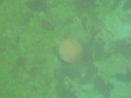 いよいよ、EM団子とEM発酵液をプールに投入しました。