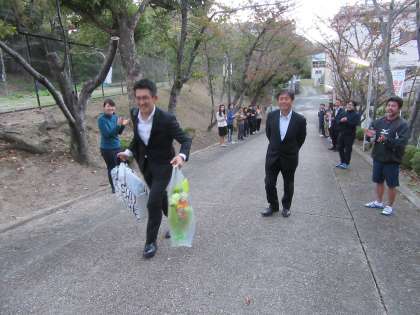 最後は教職員全員で花道を作り、送り出しをしました。