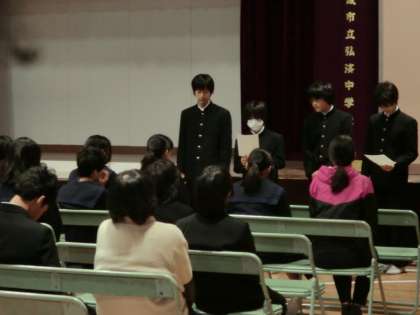 代表委員会の活動の一つである、「チャイム着席・授業態度」の月間最優秀クラス賞の発表は、今回「チェック形式」を新しく変えたので、次月に発表しますとのことでした。