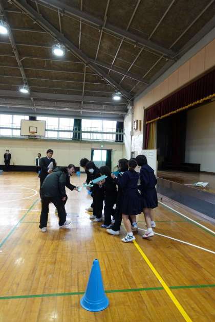 2時間目は講堂に集まり全員で体を使いながら、ピアサポートへの考え方を知る活動を行いました。