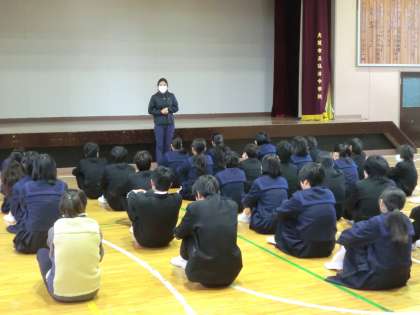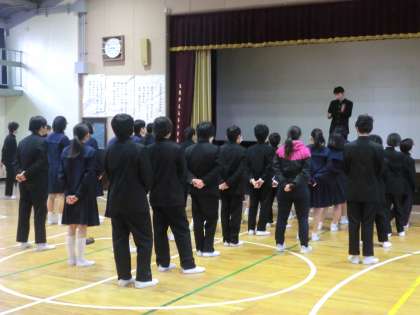 2月13日の生徒朝会は、校歌斉唱の後、中川先生より講話がありました。