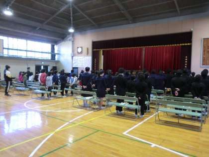 こうして仲間に囲まれて卒業式を迎えることができることに幸せを感じ、お世話になった人たちへの感謝の気持ちを胸に、明日は立派な姿で小学校・中学校生活を締めくくってほしいと思います。