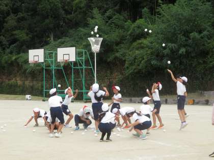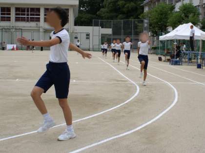 土曜日の運動会本番に向けて、小中合同で運動会の予行を行いました。