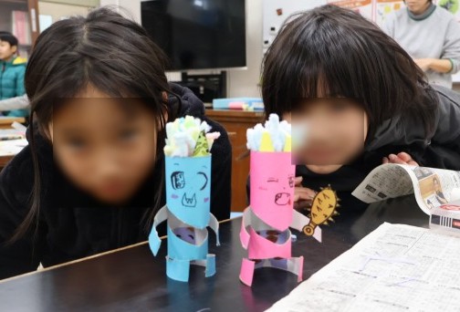 節分当日に1~3年生合同の生活タイムで節分の鬼飾りを作りました。