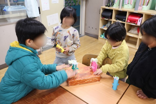 教室に戻ってからも、自分たちで作ったお気に入りの鬼たちで相撲をさせて楽しんでいました。