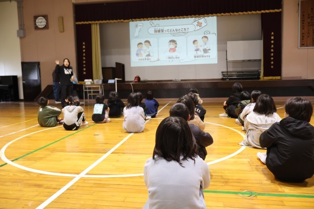 弘済小学校では、毎月の発育測定の際に保健室の先生からの保健の話があり、今月は保健室の使い方の確認を行いました。