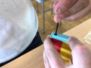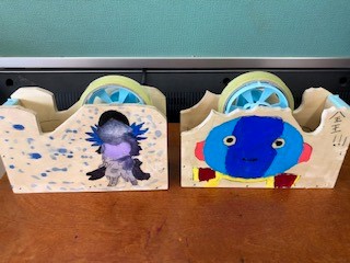 以前から作り上げてきたテープカッターの完成が見えてきました。児童たちも嬉しそうな表情が見られました。着色を行い、その後ニスを塗り終え、ドライバーやかなづちを使い、いよいよ最終工程に取り掛かっていました。特に誰もケガなく完成し、児童たちも嬉しさとホッとした様子が見えました。