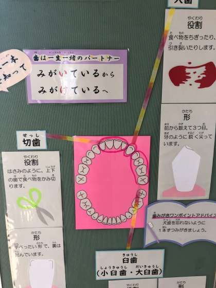 保健室からは、歯の大切さについて、アドバイス付きで伝えています。