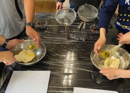7月に予定している家庭科の調理実習に向けて、職員対象の模擬調理実習を行いました。調理工程や説明、調理器具等の確認をしながら、中学生の頃に戻ったような気持ちで和気あいあいと実習に取り組みました。その中で、いくつかの改善点もあり、今後の実習に生かしたいと思います。