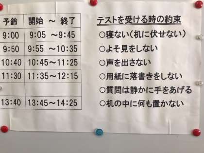 本日期末テストが実施されました。子供たちはテストが始まる前から緊張している様子でした。また、休み時間も必死に勉強している姿がありました。テスト中も最後の最後までなんとかしようと頑張っていました。頑張った成果が、点数に結びつくことを願っています。