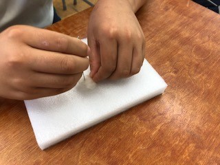 2学期に入り、羊毛フェルトを使っての作品作りに取り掛かっています。前回に引き続き、今回も針を持っての正しいやり方や作品作りにあたっての練習など導入部分に取り組んでいました。