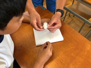 この日は、担任の先生から説明があったように実際に羊毛フェルトがどんなものかを触ってみて、羊毛フェルトを丸く形作る練習を行っていました。