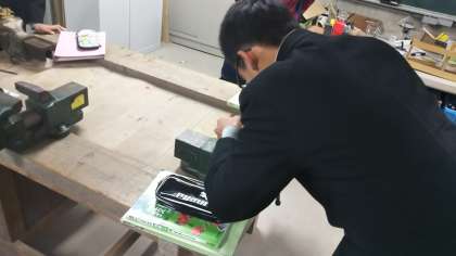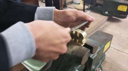 素材が鉄なので硬くて大変ですが、一心不乱にヤスリで削っていきます。