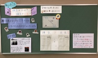 先日小学部で実施した、換気実験学習の成果を掲示しました。
