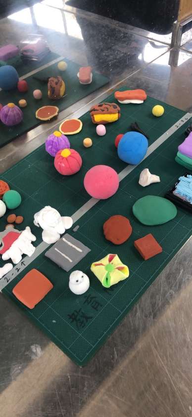中学2年生の授業では、粘土を使ってオリジナルの和菓子を制作しています。