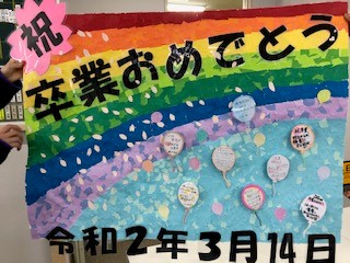 今週土曜日に行われる卒業式に向けて、卒業生に向けて送る担任の先生方からのメッセージボードが完成しました。