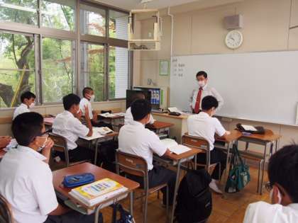 分校の授業が始まっています。マスクの着用や毎時間のアルコール消毒など慣れないことも多いですが、みんなで協力して勉強を進めています。