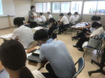 放課後、AIを活用したタブレット学習端末Qubena(キュビナ)の研修を行いました。