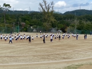 本日は4〜6限の3時間を使って、運動会練習をしています。先週までは主にソーラン節と演武の練習から、歩くだけでも筋肉痛を訴える生徒が多かったです。しかしピークは過ぎたようで、週が明けた今日は、みな足軽にグラウンドへと駆けていきました。