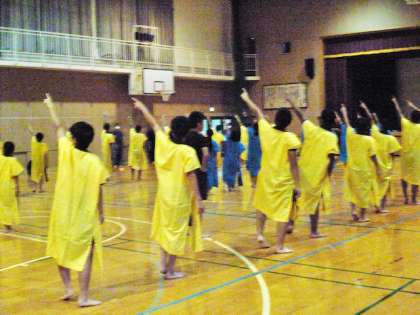 音楽や太鼓の音に合わせてタイミングを調整しました。