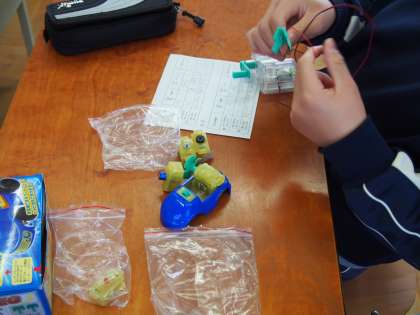 小学部では石垣先生が、手回し発電機を使った実験を通して電流の働きを、道徳では松田先生が「ナイスジャンプ」を教材に感謝することの大切さを伝えました。