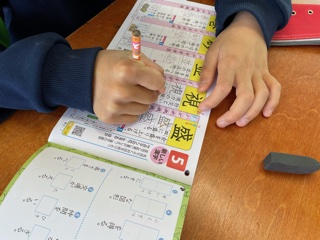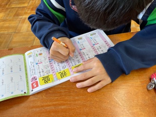 授業始めに漢字ドリルを使用し、新出漢字の書き取りを行っていました。指書きや空書きなど、担任の先生に言われた事をきちんと聞いて、一生懸命取り組んでいました。「漢字テストも頑張ります!」と意気込んでいる姿も見られました。ぜひこの一年間、満点を目指して頑張ってほしいです。