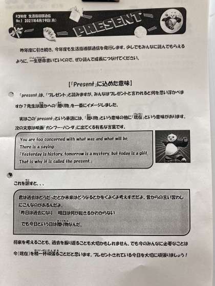 生活指導部通信と聞けば、少し硬いイメージを持ちますが、内容は生活指導に限らず色々なお話が登場します。