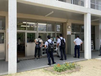 その後、グループに分かれて子ども達の生活する寮や作業している畑など阿武山学園内を見学してもらいました。