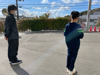 4時間目を利用し、出発式・帰校式の練習を当日と同じ場所で行っていました。参加児童数は少ないですが、中学3年生の生徒たちに負けないくらいの気持ちや行動で練習に取り組んでいました。