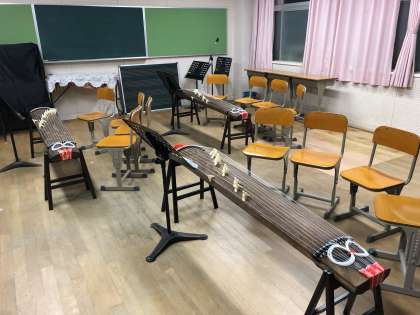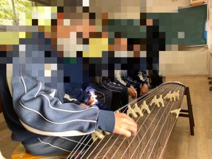 今日から、箏の実技が始まりました。さくらさくらの冒頭部分の演奏に挑戦しています。自分に合った箏爪のサイズが見つからなかったり、思うように音が鳴らなかったりと、苦戦する姿が見られましたが、生徒達はそれぞれ一生懸命に取り組んでいました。実際に弾いてみると、鑑賞するだけでは分からなかった箏の難しさや魅力を、より感じることが出来ますね。引き続き、楽しく取り組んでいきましょう♪