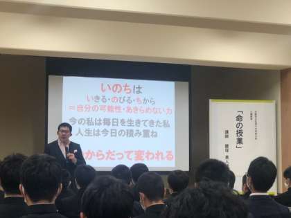「命の授業」の講演家として、自らの経験を元に、「命の尊さ」「生きていることの素晴らしさ」「ドリー夢メーカーの大切さ」「命の喜ぶ生き方」を伝える活動をされている”腰塚勇人”さんを講師に招いて講演をしていただきました。