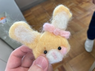 1枚目の写真でのウサギや2枚目の写真でのリストバンドといったように、針とフェルトだけを使い、とても上手に作品を作り上げていました。
