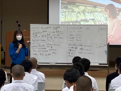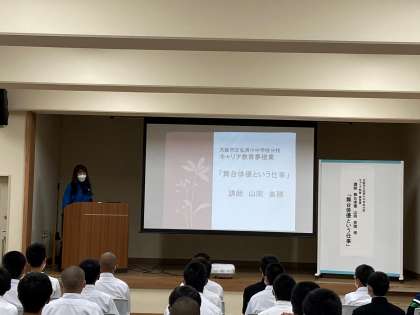 本日、5,6時間目にキャリア教育の夢授業の一環で 舞台俳優 山岡美穂さんをお招きして 「舞台俳優という仕事」についてお話をしていただきました。