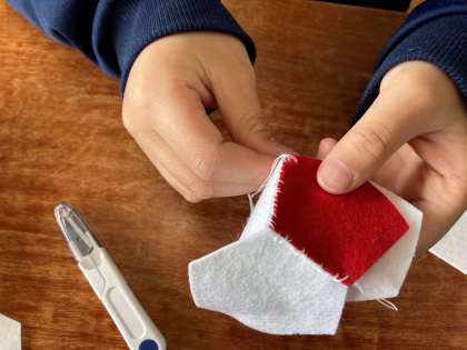 あとは、丁寧にコツコツと縫っていくだけです。最初は苦手そうに見えましたが、今は楽しそうに取り組んでくれています。
