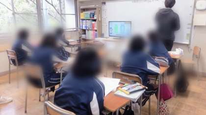 物質について勉強をしています。子ども達は静かに先生の話を聞いたり、プリントで復習を進めたりしていました。