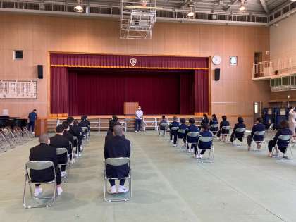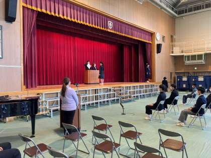 今日は、入場から証書授与、そして歌唱の練習を行いました。みんな随分と落ち着いて、堂々と証書を受け取れるようになってきました。