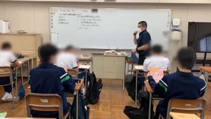 3年生は「現在完了」の文法を勉強しています。「〜したことがある」となるように英文を組み立てます。英語は単語の形が変化するので、文に合わせて単語も覚えなくてはいけないので大変です。小テストで確認したり単語を発音したりと、工夫を凝らしながら単語を覚えていっています。