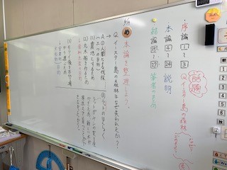 自分の意見を書く場面では、『序論→本論→結論』の構成に則って、「自分は筆者の意見に対して〜です。なぜなら〜からです。」と前回習った因果関係の構文を用いて、三段落で簡潔に表すことができました。