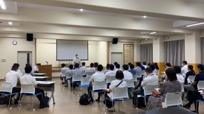 5時間目の授業を見学して頂いた後、講堂にて学園・分校の歴史や取り組みを説明しました。説明後には、暑い中ではありましたが、施設の見学を行いました。