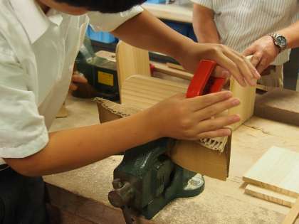 前に置いてある見本作品のように、美しく機能的な本立てに仕上がるよう期待しています。