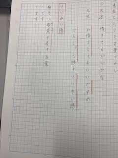 今日は「敬語」について学びました。敬語には、丁寧語:相手に敬意を表す言葉、謙譲語:へりくだって使う言葉、尊敬語:目上の人の行動を表す言葉の3つがあり、それぞれの使い方を例文を元に正しく直したり、比較して違いについて確認しました。児童たちは、それぞれの言葉や使い方をよく知っており、スムーズに理解していました。今後も常に使う言葉なので、話す内容や相手の立場によって使い分けていけたらと思います。