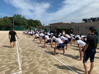 写真は、みんなで一つになって演技するために気合を入れている場面です。日々の日課もしっかりやりつつ休まず練習を重ねてきました。その思いの丈を是非とも本番で爆発させてほしいと思います。