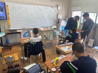 今日は、作品名「将来の自分」の背景と床を作成しました。それぞれが必要な材料を考えて工作したり、絵の具で色を塗ったりしていました。4時間通しての図工でしたが、子どもたちは休憩も忘れるくらい熱中して制作していました。