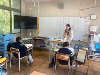 今日は日本の文字について学びました。漢字は、音と意味の2つをあらわしていることや、ひらがな・かたかなは万葉仮名から派生してつくられたことを知りました。実際に漢字が作られていった過程を写真で見ると、子どもたちは「なるほど」という表情をしていました。