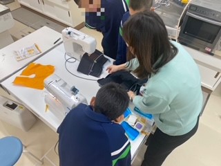 今日は巾着づくりの続きをしました。本体にポケットを付け、空き止まり部分の補強をしました。児童たちはミシンの扱いにも慣れ、集中して取り組んでいました。