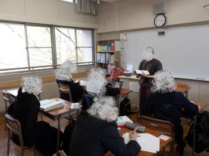 下の写真は2年生の国語の授業です。先週実施した学年末テストの返却を行っており、「よかった」や「まあまあ」と声があがりました。2年生全体の様子として、今年度最後のテストに対してこれまで以上に真剣に向き合い頑張っていたようです。3年生にむけて今後の成長が楽しみです。