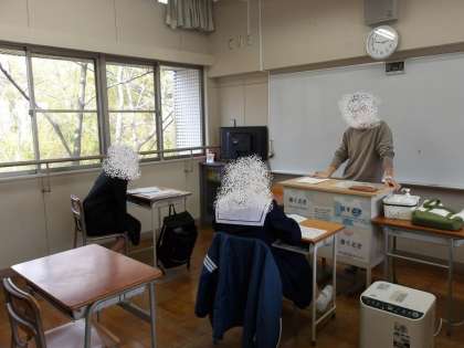 真ん中は3年生の数学の授業のようすです。受験に向けてそれぞれの課題に取り組んでいました。自分のやり方で真剣に取り組んでいました。