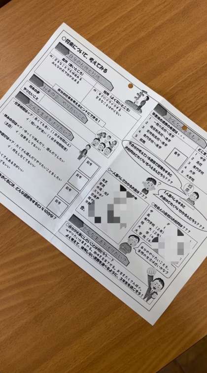 アンケート終了後は各クラスでの取り組みでした。あるクラスはプリントを使って、将来について考えるキャリア学習を行いました。3年生になり進路に関する質問が増えてきました。自分の進路実現に向けて意識が高まってきています。後悔のない進路選択ができるよう子どもたちをサポートしてまいります。