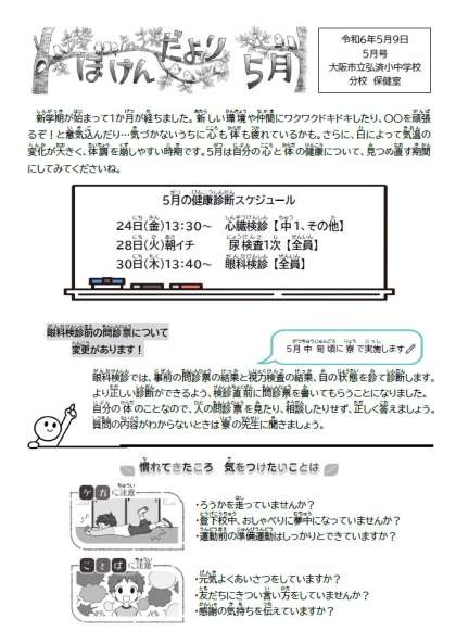 学校生活にも少しずつ慣れてきて、疲れが出てきているかもしれません。それに伴い、ケガや病気の人が増えています。