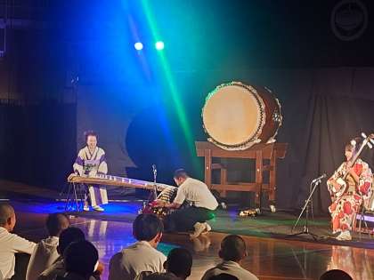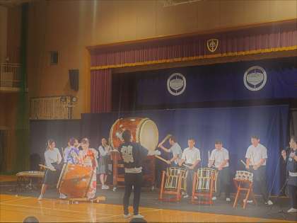 「和楽器演奏集団・独楽」の方々が来校され、力強い和楽器の
